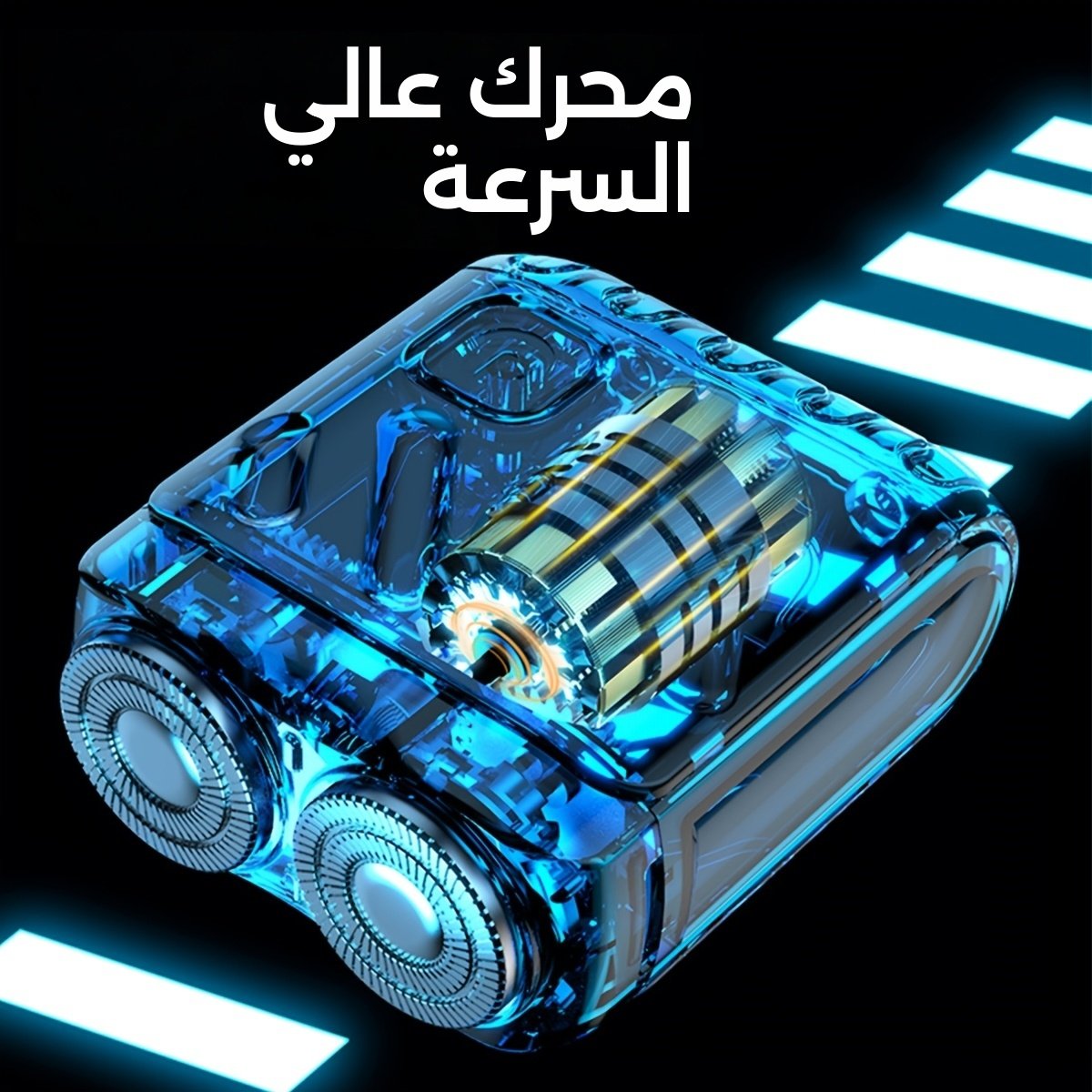 ماكينة حلاقة كهربائية صغيرة الحجم بقوة أداء عالية، مزودة بشفرة مزدوجة مغناطيسية ومحرك سريع، قابلة للشحن عبر Type-C، مثالية للاستخدام اليومي والسفر.