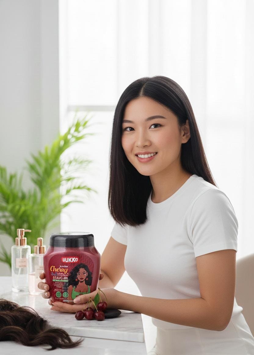 ماسك بخلاصة الكرز الغنية بمضادات الأكسدة يمنح الشعر لمعانًا صحيًا، نعومة، وحماية من العوامل الخارجية.