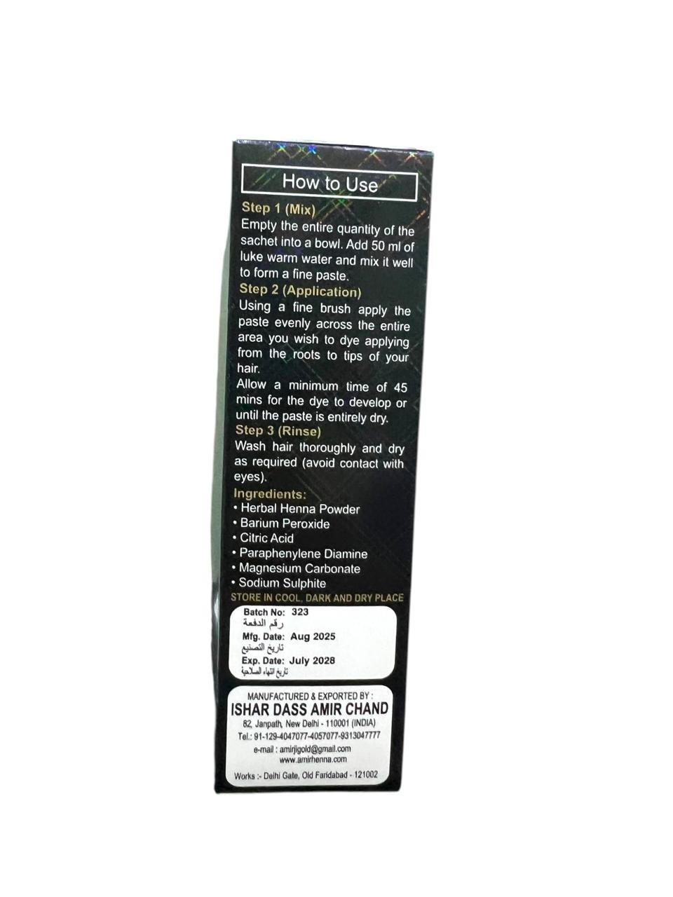 Black Gold Henna is a premium hair color product that offers a rich, natural black hue. Made from high-quality natural ingredients, it nourishes the hair while providing vibrant color and shine. The unique formula ensures perfect coverage of gray hair and supports scalp health. Easy to use and safe for all hair types, Black Gold Henna allows you to achieve long-lasting color without harmful chemicals. Experience the beauty of healthy, radiant hair with this exceptional henna.