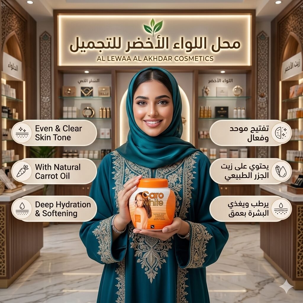 امنحي بشرتك العناية المثالية مع كريم Caro White بزيت الجزر، المصمم لترطيب البشرة وتحسين مظهرها بشكل يومي.