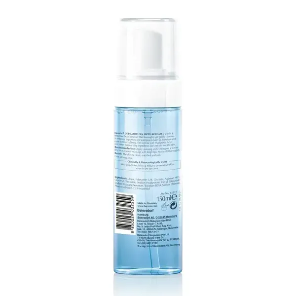 Eucerin Dermatoclean Cleansing Foam is a deep cleansing product that combines a gentle micellar foam formula with powerful moisturizing ingredients. This innovative cleanser effectively removes dirt, makeup, and excess oil in just one step, leaving your skin feeling fresh without any dryness or tightness. Enriched with sodium hyaluronate, it deeply hydrates and locks moisture into the skin, ensuring a soft and smooth texture. The unique blend of hyaluronic acid, glycerin, and APG complex works together to maintain skin elasticity, balance moisture levels, and prevent irritation. With regular use, Eucerin Dermatoclean Cleansing Foam helps you achieve a clear, healthy complexion that looks and feels revitalized.