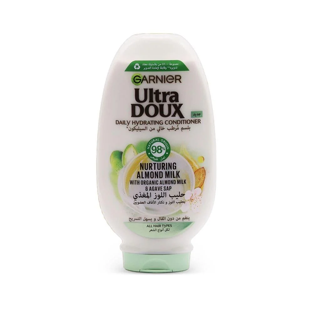 Garnier Ultra Doux Daily Hydrating Conditioner with Organic Almond Milk & Agave Sap provides lightweight daily hydration for all hair types.