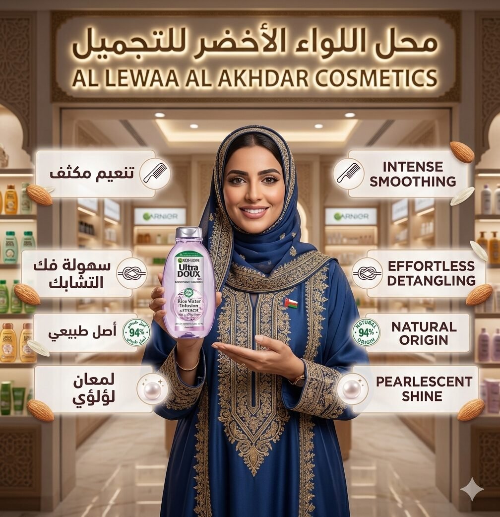 احصلي على شعر ناعم، لامع وسهل التصفيف مع شامبو غارنييه ألترا دوكس بخلاصة ماء الأرز والنشا، المصمم خصيصًا للعناية بالشعر الطويل والتحكم في الهيشان.