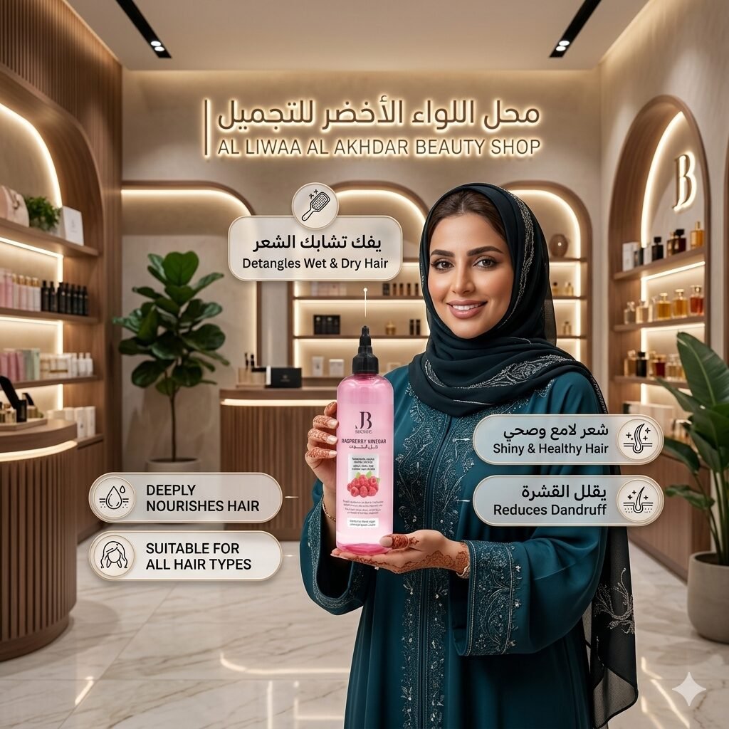 استمتعي بشعر ناعم، لامع وصحي مع خل التوت العضوي للشعر، الحل الطبيعي لتنظيف فروة الرأس وتعزيز جمال الشعر.